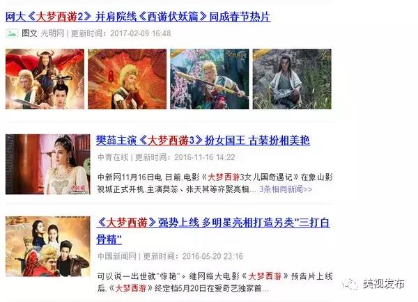 大梦西游系列第二部《铁扇公主》,大年初三开播就取得了网络大电影日榜首位,仅仅2个播放日就高踞爱奇艺2017年1月票房榜第2名。