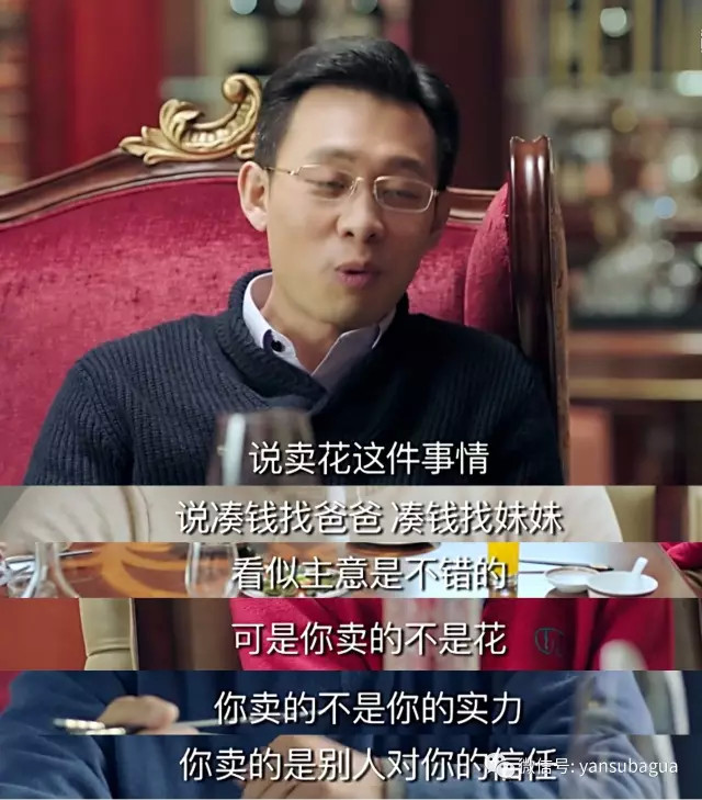 陈江河也并不批评,而是循循善诱:“你卖花卖的不是实力,而是卖了别人对你的信任”,不是长久之计。