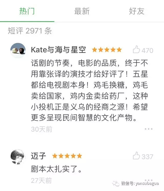 还有一个原班人马:《温州一家人》中演张译妻子的张佳宁在《鸡毛飞上天》里演他的干女儿……大概就是演技好任性吧。